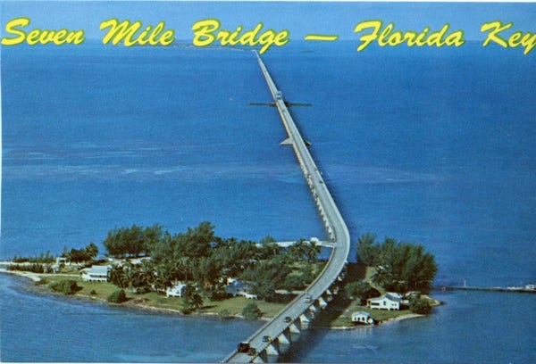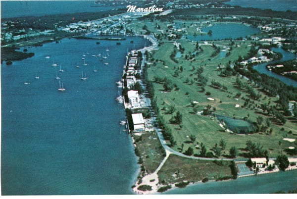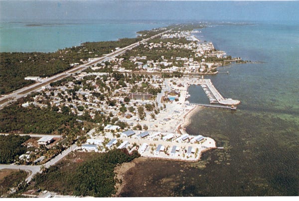 More aerial views of Marathon Key taken from Sombrero Beach, show the Country Club sailing yacht basin, and golf course. Then to Bahia Honda State Park, and over the seven-mile bridge that goes to the sea for 150 miles. Now at the Sunshine Key and an RV park on the key.