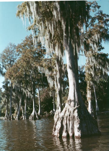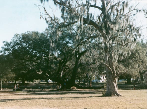 Here, we are at New Orleans City Park which is one of the country’s largest municipal parks that covers over 1,500 acres of a former plantation. A 100-year-old oak tree is in the center of the photo.
