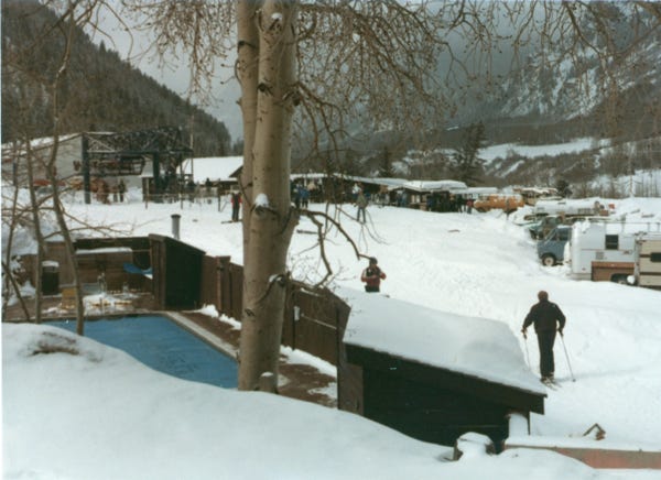 At Aspen Highlands and Buttermilk, we would put on our swimming suits and a coat and walk over to the pool with our brandy and soak in the warm water and then to their dorm showers in the Inn. Because we did this for so many years, we saw the same people each year. Ah, the good old days!