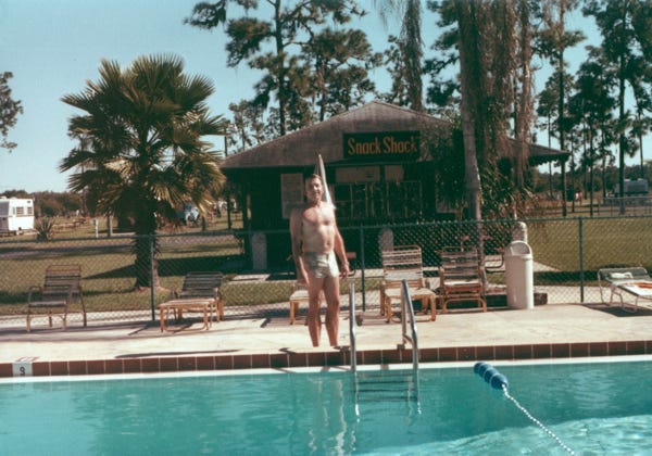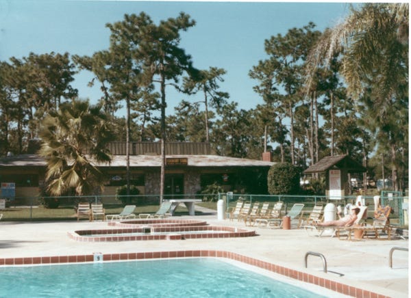 We drove back to our trailer in Kissimmee at the KOA campground, now it was time to have some fun. This is Nancy and me at the park enjoying the sunny weather, and Bill at the pool. These are odd-looking ducks at the campground. After a few days of relaxing, we were on our way to see the Walt Disney World Resort.