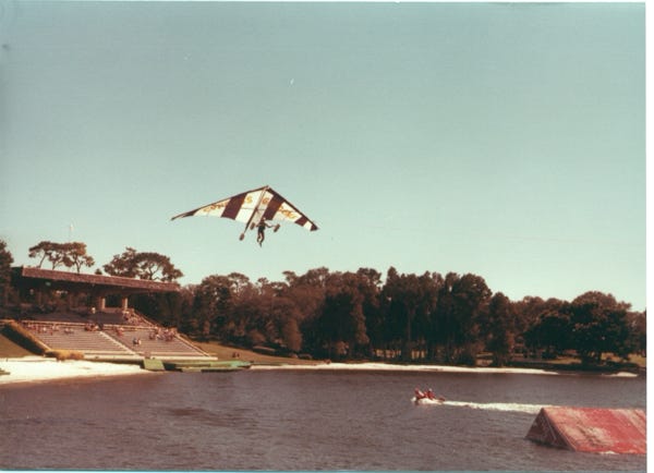 We then went to the show where the water skiers performed, you will see many photos of water skiers performing various tricks, along with a hang glider.
