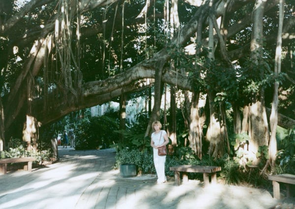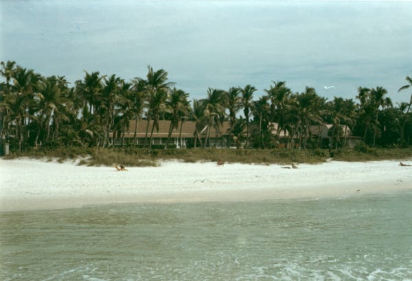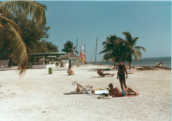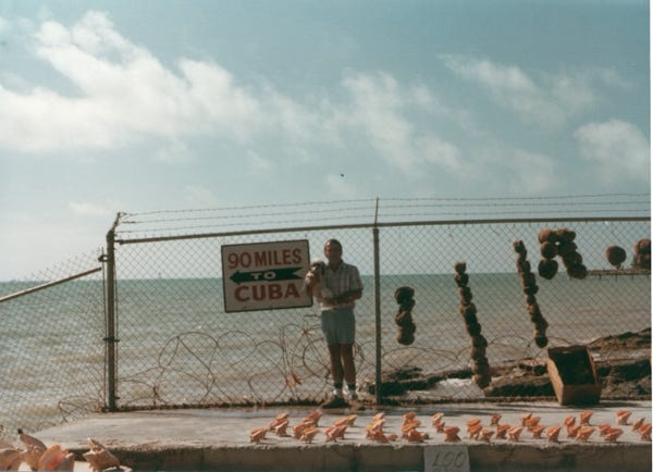 Here are the three of us at the Southernmost point in the United States in Key West, Florida. Bill and I standing by a sign that reads only 90 miles to Cuba with sponges and conch shells on the ground. We had a great time in Key West, bought several pairs of handmade sandals, and then it was time to head north.