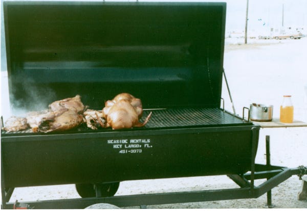 We were at the park over the Thanksgiving Holiday, and the owner of the park barbequed Smoked Turkey, Ham, and Wild Boar for the potluck gathering that we attended.