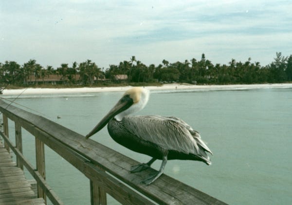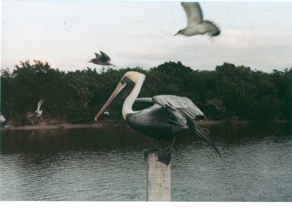 Staying at Flamingo Campground in Everglades National Park we were able to explore the many sites of the area. A photo of the brown pelican on the post next to the water.