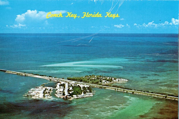 We left the trailer at the park and drove the truck down to Key West stopping at Islamorada on the Florida Keys and driving the overseas highway to the Keys. We stayed at a KOA campground on Fiesta Key, and then to the tiny island of Conch Key that stands alone along a stretch of bridges between the Florida mainland and Key West.
