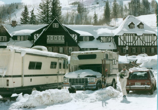 Back then it was okay to park in the parking lots with your RV, the only requirement was when the parking lot had to be cleared of snow they needed you to move your rig out of the way for the snow plows and then you just move back into your spot.