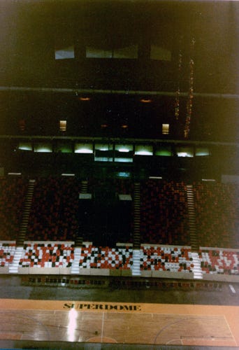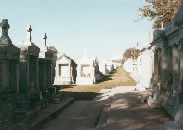 An aerial view of the Superdome in New Orleans, and a view inside the dome. We walked the St. Louis Cemetery where all of the graves are placed above the ground because of ground water.