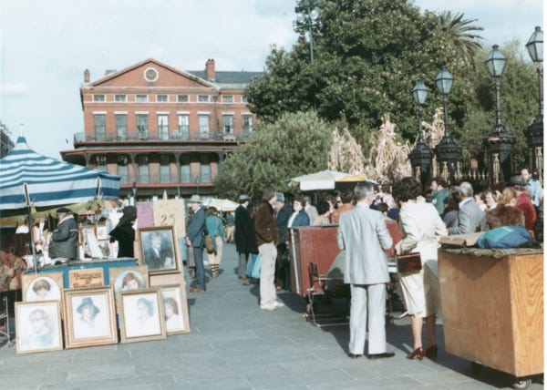 Here, we are a Jackson Square where they had an outdoor market, and a singer on the street in the French Quarters.