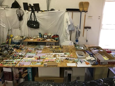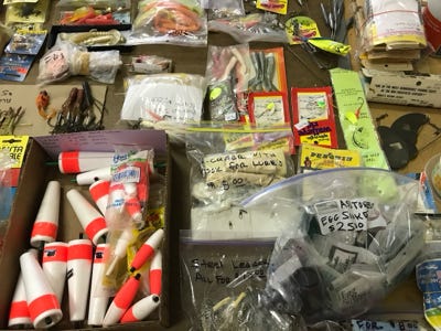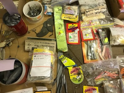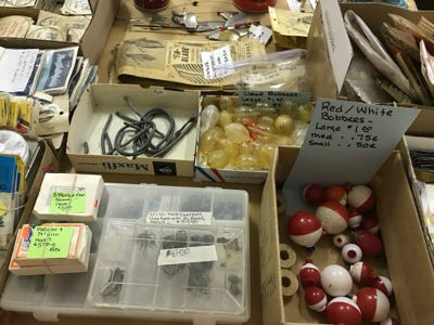 From the photos above you will see many boxes of weights, leader material, hooks, floats, and so we are not listing the amount of each item, but we have a lot.