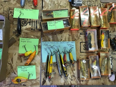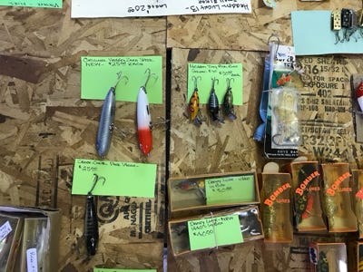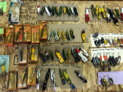 We got most of this information from Vintage Fishing Tackle books at the library and going online to vintage websites, and many other places to determine our value. Listed below under Vintage Lures is a small list of the most popular lures that we have.