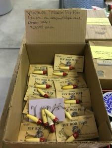 We have counted in all of the boxes, 589 flies, some are wet or dry flies, some are hand-tied, and some are machine-tied, some we got in Yellowstone National Park, and others from all over the country. We have other vintage flies, bug flies, and small trout poppers to list a few.