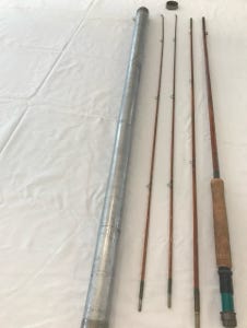 Montague Fishkill - 9’, 3 pieces with 2 tips, split bamboo, rated one of the top five fly rods, excellent condition. This is a rare find, the rod is in a metal tube dated May 15, 1931.