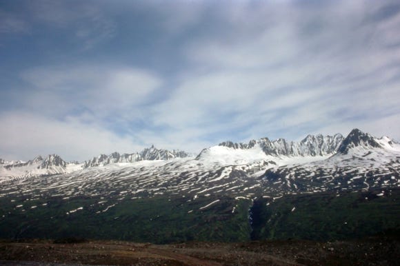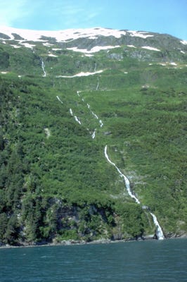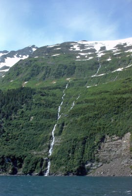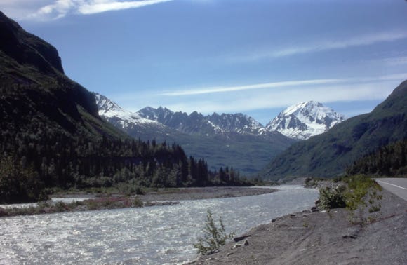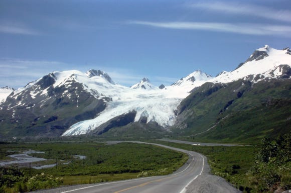 As we drive south along the Richardson Highway to Valdez, we pass the Chugach mountain range which is called “Little Switzerland Of America”, and another mountain range called Billy Mitchell and the Tiekel River. We arrive at the Worthington Glacier and then pass the Bridal Veil Falls in Keystone Canyon at MP 13, and then see the Horsetail Falls in Keystone Canyon.
