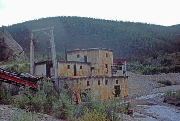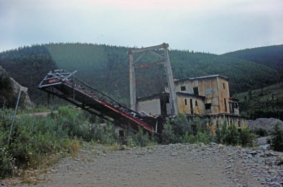 Leaving Dawson City on Highway 2 (Klondike Hwy) we approach a very narrow wooden bridge going over the Ketza River at MP 212. The Ketza River Mine was opened in 1988 for gold and silver mining and produced over 300,000 metric tons of gold. The Ketza mine owned by Veris Gold was abandoned in 2015, and now the government has a remediation plan to be completed in 2022 to clean up the pollution from the mine.