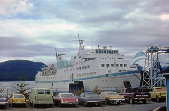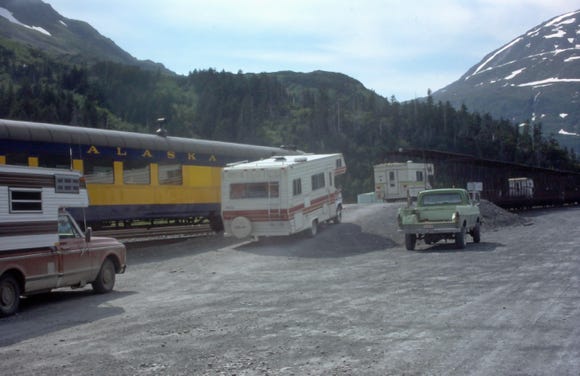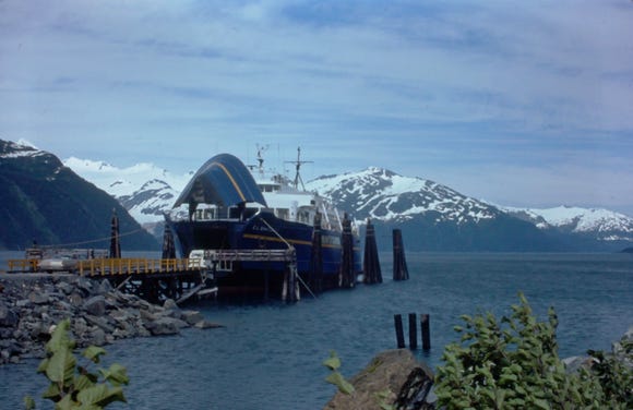 You can see the RV’s driving into the lower deck on the MV Bartlett ferry for the trip through the Prince William Sound to the Columbia Glacier and Whitter. The cost of this trip was $97.00 for the 19-foot Lazy Daze.