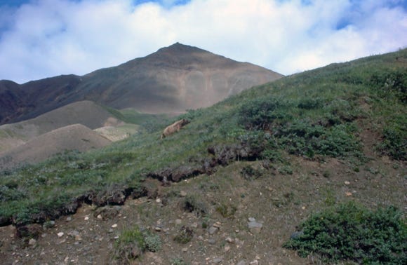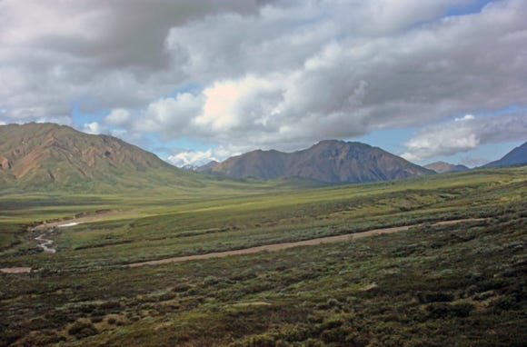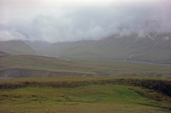 The next day we got on the bus tour to Denali; it was cloudy and cold with some rain. Denali is six million acres of wild land, bisected by a one-lane road. This is North America’s tallest peak at 20,310 feet in elevation.