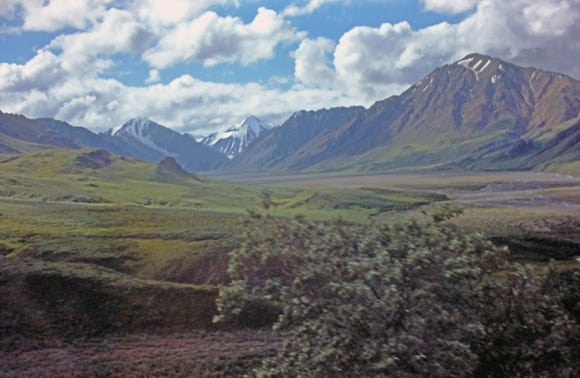 Leaving Soldotna we pass fireweed along the highway as we go to Anchorage and then to Mt. McKinely now officially renamed to its original name of Denali by the native Alaskans in their Athabascan language.