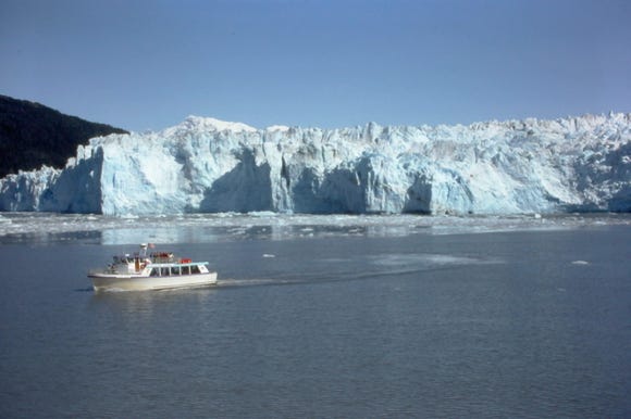 Cruising along Prince William Sound to the Columbia Glacier was spectacular. We were fortunate to have a sunny day without wind or clouds. You can see the photos of the scenery as we approach the Columbia Glacier. The Columbia Glacier is the second-largest tidewater glacier in North America and the largest in Prince William Sound, at over 700 feet thick.