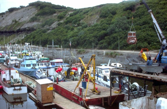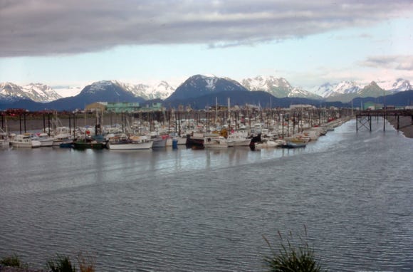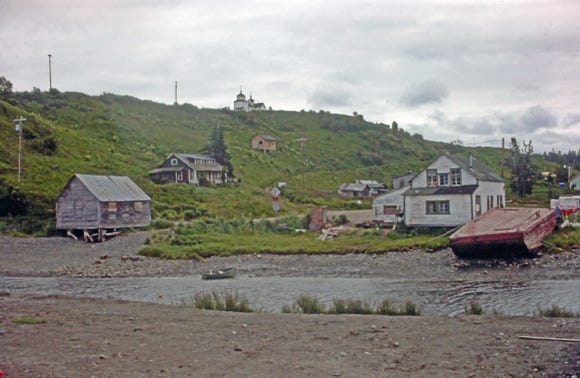 The town’s picturesque Russian Orthodox chapel is a highlight of the area. Photos of the boat harbor and containers full of salmon. Deep Creek and salmon spawn at the inlet of Deep Creek.