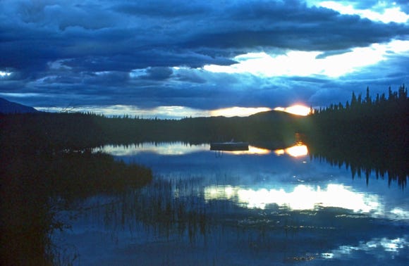 We drove to Tok River Bridge campground, and a view of Island Lake, arriving at 10:00 PM, and it was still light outside!