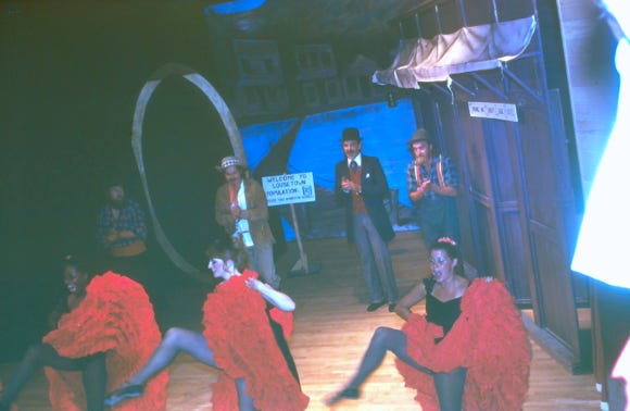The Flora Dora Hotel in Dawson City and an evening at the “Gaslight Follies,” watching the performers dancing and singing.