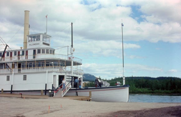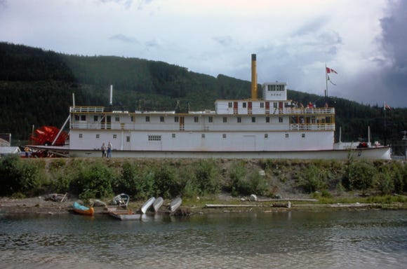 Photos of the SS Klondike, one of two stern wheelers that were moved through the streets of Whitehorse in 1968 to its present site. These were used to move freight between Whitehorse and Dawson City on the Yukon River. In Whitehorse are the Log Skyscrapers, built-in 1947 to provide housing for the construction workers for the Alaska Highway, the North West Staging Route Airports, and the Canol Pipeline.