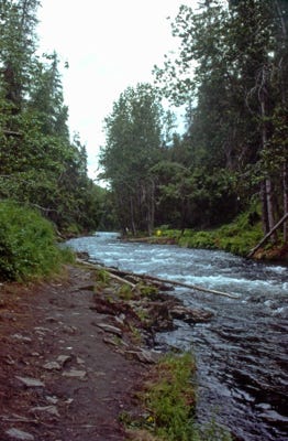 During the week of July, 4th there was a large salmon run going up the river for two weeks, the campground was full and people were parking on the main highway and hiking down to the river to catch salmon. The weekends are extremely crowded this time of the year. We hiked up to the falls area on the river and fishing was slow.