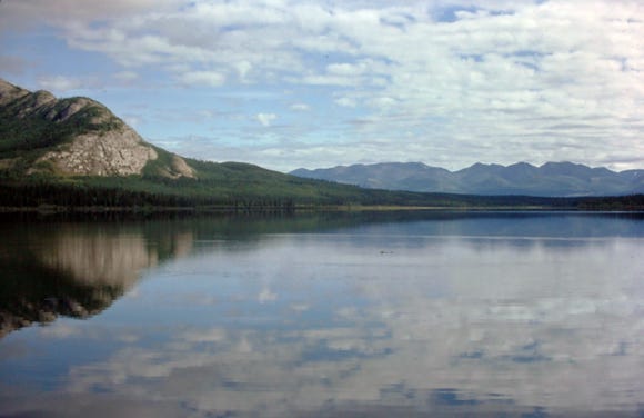 The next morning we drove to Carmacks and spent the night and leaving we are now on Highway 9 (Robert Campbell Highway). Arriving at Frances Lake we fished the Hoole River and caught five grayling using a yellow wobbler.