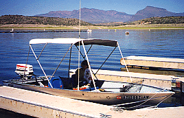 Well, you have read about our first two boats and if you "About our RV,” you can read a bit more about our current boat, a 15-foot Gregor Car top. We outfitted our aluminum boat with indoor/outdoor carpeting, our CB, and a Lowrence fish finder, a portable radio, a sunshade with removable front, rear, and side screens made out of 80% solar sunscreen for those hot days fishing on the river or the lakes in the summer. We have fished the famous "Tyee pool" out of Campbell River on Vancouver Island for King Salmon and boated the Georgia Strait off Vancouver Island in our small 15-foot boat. We have caught a 50-pound King Salmon called "Tyee" out of our small boat and have used this boat for the last 20 years. We have never had to rebuild our 25-horsepower Johnson motor, pretty good service from Johnson! The only thing that we have had to do is replace the water impeller, coil, and power pack, not bad for 20 years of service! On our Gregor boat, we had only a very small leak at a weld area that had to be repaired and that is it, it has served us well!