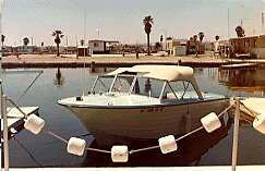 We spent many weeks looking at the ads and going over to people's houses looking at boats, some of which were in very poor shape. We then came across an ad and called the person to come over to see his boat. The boat was stored in a garage and had not been used for a year. When the gentleman opened the garage door, to our surprise was the clean, blue sparkling 16-foot Span American! Bill and I did not act interested (something that you're supposed to do) and we walked around the boat each of us poked one another and in a whisper said this was perfect! When he told us how much he was asking for the boat, we could not believe what he had said, all this for only $1200.00! We made arrangements with the man to test drive the boat the following weekend at Lake Piru (a lake in California).