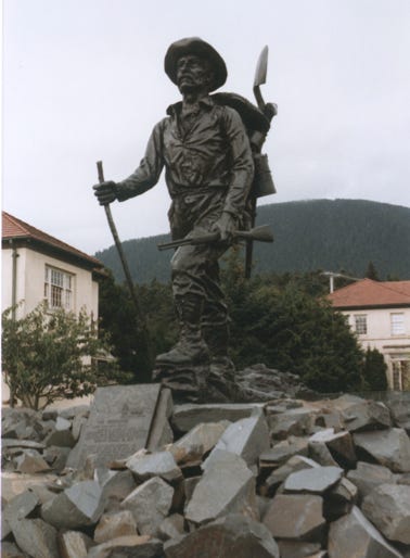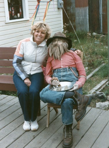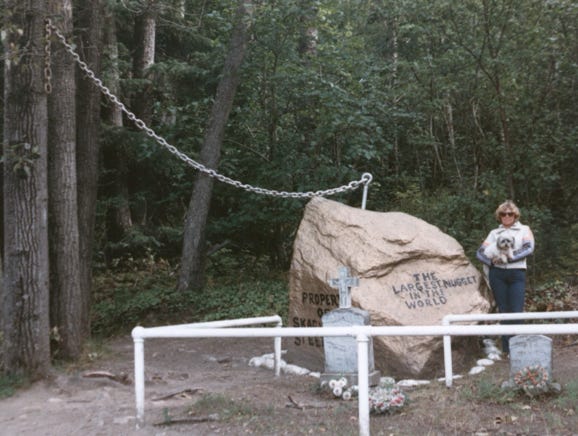 Nancy and Lady at the “Gold Rush Cemetery and the largest Gold Nugget in the World!”
