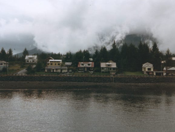 Ketchikan’s greatest claim to fame is horizontal rain which averages about 13 feet a year. Much of it arrives in great deluges, pushed sideways by 60 mph winds.