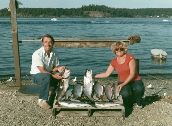 It was in December 1984 that Nancy got a check from the Canadian government for $500.00 for first prize from the Canadian Salmon Tagging Program. We caught many salmon in Canada that summer and if you caught a fish with a tag and turned it into the tagging program you could win a prize, and she did.