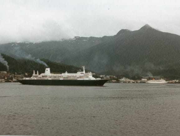 On June 29, 1984, you will see the M.V. Sundancer a 50 million dollar ship on its third sailing to Alaska struck rocks on Maude Island tearing a 30-foot hole in the hull. We heard about this at the trailer park and many of us got into our boats to boat two miles to the area and took photos of the accident.