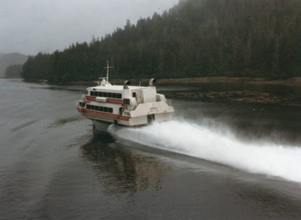 You will see a photo of Boeing’s Aries Hydrofoil which cruises at 50 mph and services seven ports in Alaska.