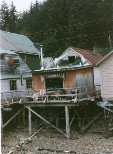 The photo of Tenakee Springs “Town Center,” is called Shamrock it is their movie palace, senior citizens center, library, town meeting hall, and shindigs.