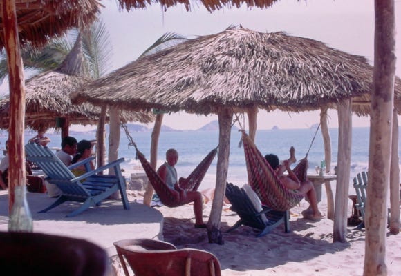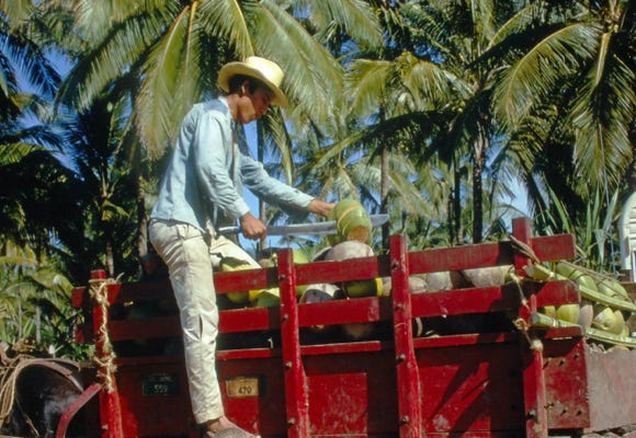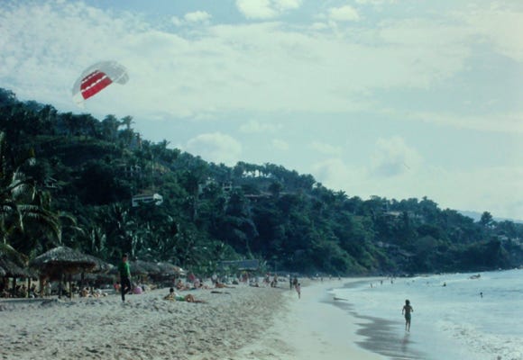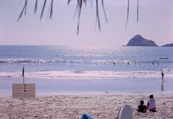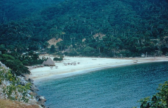 Leaving San Blas we drove south on the road to Santa Cruz, the road we took was a dirt road at the time (1969) and we entered a beautiful beach called Playa Los Cocos. It is bordered by a large coconut palm grove; the beach extends north to Playa Matanchen and Playa Las Islitas.