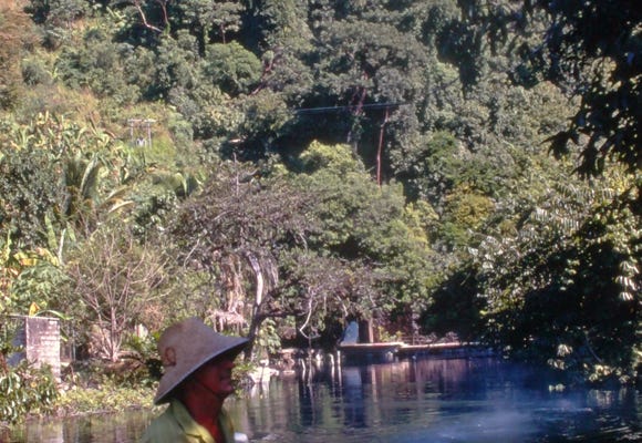 At the waterfalls, Nancy and Bill enjoyed the cool water while Lady sat under some shade, we were the only ones at the waterfall, now it is a very popular area crowded with many tourists.