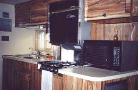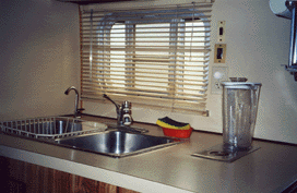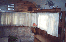 If you read "About Our RV,” you will see that our trailer is set up for full-time RVing. Over the years, we have added many items to make our trailer more comfortable. This is truly a one-of-a-kind unit. We have redone the interior, with new carpeting, sheer curtains along with pleated drapes. The sofa has been redesigned with new cushions and fabric. The sofa can fold down to make a bed, but underneath the main cushion when you lift it up is a large storage compartment that is the full length of the sofa.