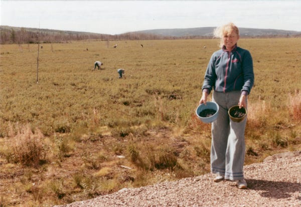 As we were driving on Highway 1, we saw several tourist buses parked along the side of the highway. We got out of the truck and many of the tourists had their coffee cups or paper cups full of blueberries. They were going into the fields picking blueberries.