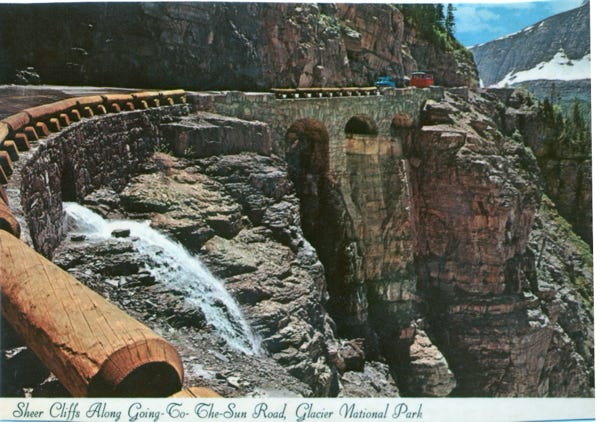 Now at Glacier National Park and driving the “Going-To-The-Sun Road,” is a 55-mile stretch of a spectacular highway that bisects Glacier Park at Logan Pass at the summit of the Continental Divide.