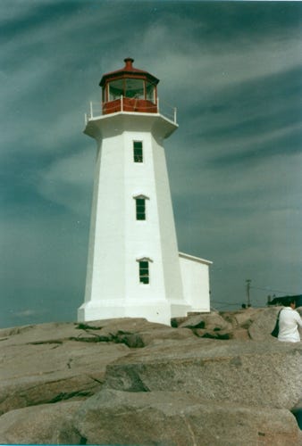 Arriving in Newfoundland, Canada, and the town of St. John’s, the capital of Newfoundland and the oldest city founded by Europeans in North America. As you can see the weather was mostly cloudy, foggy, and overcast. Here is a view of a lighthouse from Signal Hill Historic Park in St. John’s.