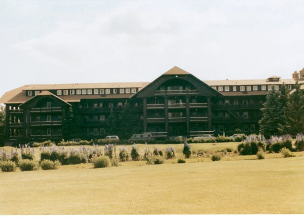 A view of Waterton Lakes National Park in Alberta, Canada, and the Prince of Wales Hotel.