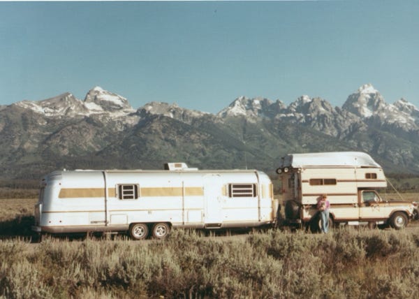 We left Flaming Gorge and took State Route 187 to Jackson, Wyoming camping on the Hoback River, Bill is holding a cutthroat trout and I am thinking of trout for dinner.