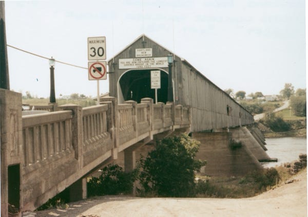 This is the world’s longest covered bridge in Hartland, New Brunswick, at 1,282 feet. It crosses the Saint John River from Harland to Somerville, New Brunswick, Canada. The framework consists of seven small Howe Truss Bridges joined together on six piers.