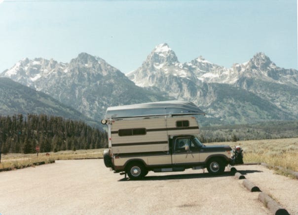 To see the area, we planned to stay at campgrounds along the two main loops in the park. Entering from the South entrance we stayed at Grant Village and left the trailer there for several days and took the truck and camper to drive the lower loop from Old Faithful to Madison Junction, Norris Junction, Canyon Village, Bridge Bay, and back to Grant Village. We did this because towing a large trailer with a total length of 55 feet it would be hard to find parking spaces at the different sites.