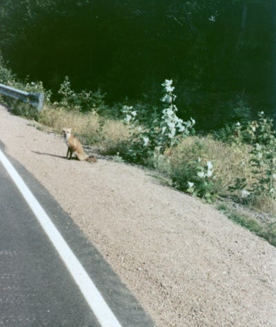 Driving along the Cabot Trail and a red fox next to the road. Now at Neils Harbour various photos of the fishing village and the lighthouse.