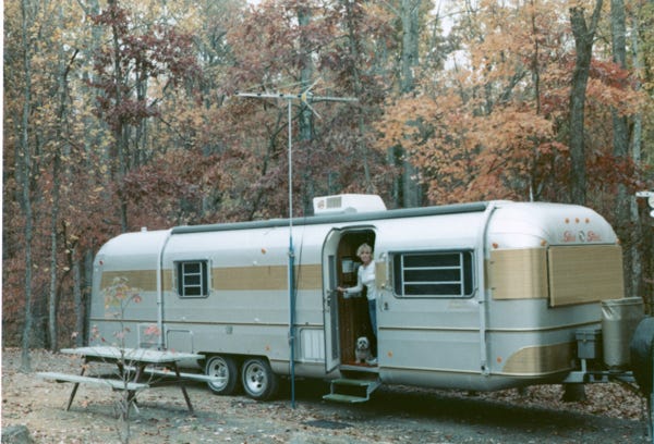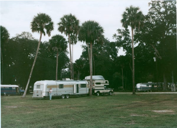 After the tour, we drove to Titusville and camped along the highway along with many other people and spent the night. Nancy and me having a great time in the camper.