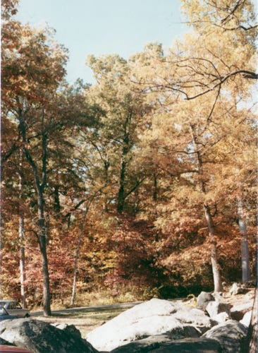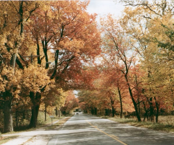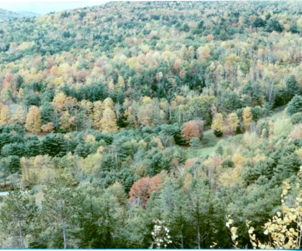We are now on Highway 302, and 25 heading to Barre, Vermont, the trees still have fall colors. Bill standing along the two-lane road.