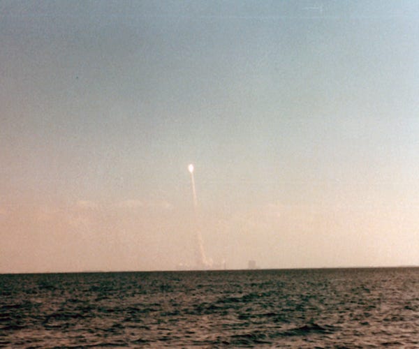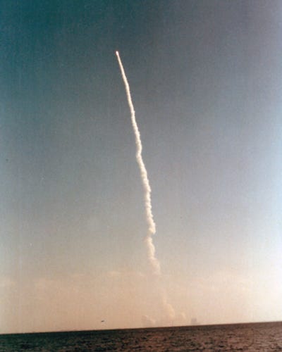 10:00 AM, the time of the launch. A postcard of how a launch would look of the shuttle. The final photos of the launch of Columbia as we watch it go into space.